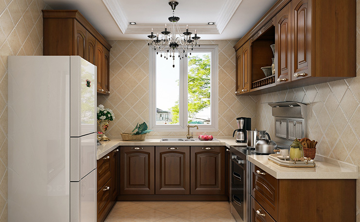 歐式古典櫥柜與現(xiàn)代家居相結合,以古樸紋路及羅馬柱設計,突出整體設計之感,整體以吊柜和地柜為主,即拉大的空間感,又有著非常實用的存儲作用。